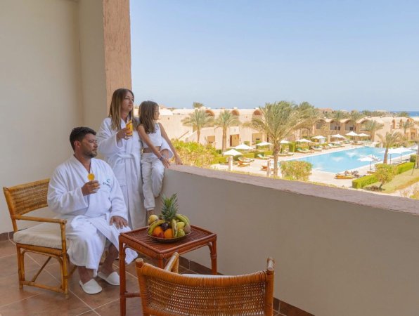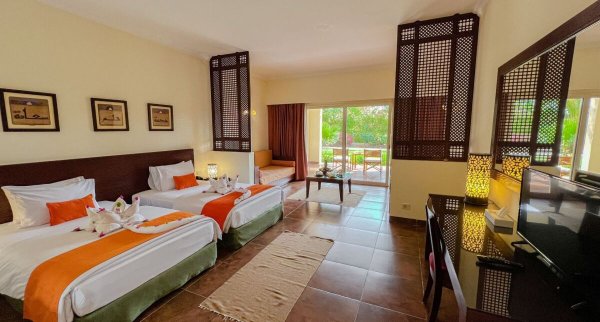 Hotel Gemma Resort położony jest nad samym brzegiem Morza Czerwonego, w kurorcie Marsa Alam i jest prawdziwą oazą pośrodku pustyni. Hotel został zaprojektowany w nubijskim stylu architektonicznym i posiada przytulny teren z prywatną piaszczystą plażą, sześcioma basenami, w tym podgrzewanym w zimie, restauracjami, barami, kortami tenisowymi, miniboiskiem do piłki nożnej, miniklubem dla dzieci, a także centrum SPA z siłownią.