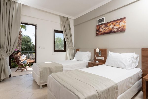 ECONOMY/ STANDARD - pokój dwuosobowy z możliwością dostawki, o powierzchni ok. 14 m2, standardowo wyposażony w łazienkę z prysznicem, zestaw kosmetyków, suszarkę do włosów, indywidualnie sterowaną klimatyzację, TV, minibar, Wi-Fi, balkon, widok na ogród