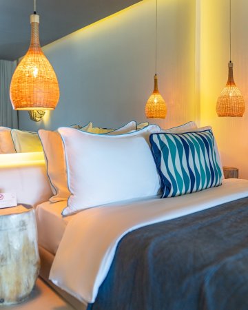 2-os. (możliwość 1 dostawki); ok. 30 m²; stylowy, elegancki; klimatyzowany; łazienka (wanna lub prysznic, wc, suszarka); telewizja satelitarna; telefon; sejf; minibar; bezpłatne łóżeczko dla dziecka do 2 lat na zamówienie przed przyjazdem; balkon (stolik i krzesełka); widok na morze