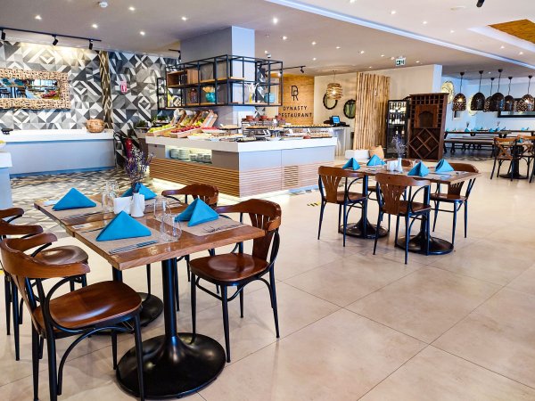 restauracja główna Dynasty – dania w formie bufetu, kuchnia międzynarodowa, dostępne foteliki dla dzieci, dania wegetariańskie; restauracja Seya Beach Lounge & Restuarant; 2 bary: w lobby i przy basenie; kawiarnia