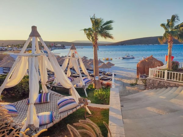 Położony w turystycznej miejscowości Alacati, nazywanej mekką windsurferów, leżącej nad cudowną, płytką, piaszczystą zatoką – każdy znajdzie tu coś dla siebie! Na najmłodszych czeka tu basen ze zjeżdżalniami, miniklub i plac zabaw, a Gości pragnących aktywnie spędzić czas na pewno zadowoli oferta sportów wodnych na plaży, takich jak windsurfing czy kitesurfing. Można się tu zrelaksować w stylowych i eleganckich wnętrzach, przy basenie, odwiedzając spa oraz podziwiając wspaniałe turkusowe Morze Egejskie. Niezwykłe i niepowtarzalne umiejscowienie gwarantuje wypoczynek bezpośrednio przy pięknej plaży w słynnym na całym świecie miejscu.