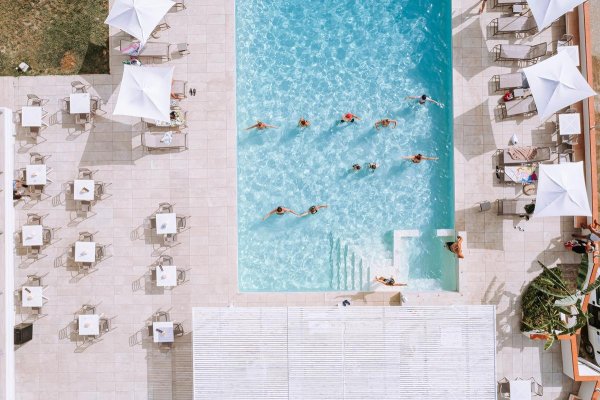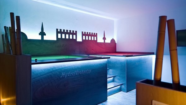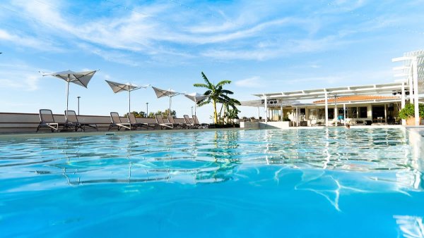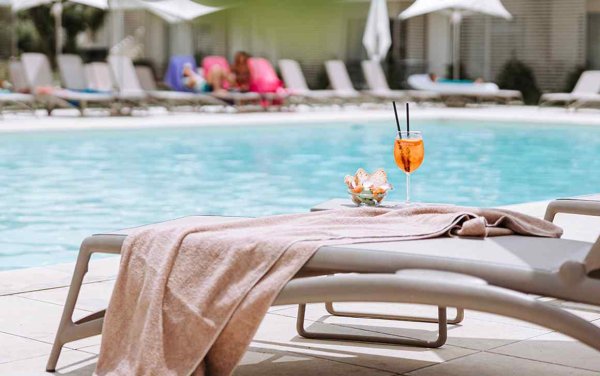 2 baseny, słodka woda, ok. 180 m² i 150 m², podgrzewany (w terminie: kwiecień-maj, wrzesień-październik); hydromasaż (ok. 27 m²); przy basenach bezpłatne parasole i leżaki