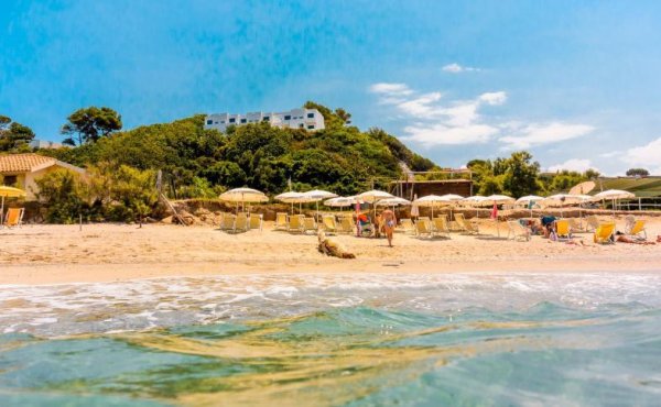 ok. 350-500 m od hotelu (w zależności od miejsca zakwaterowania); piaszczysta – biały piasek, miejscami drobny żwirek; dojście przez teren hotelu oraz lokalną drogą lub dojazd bezpłatnym busem hotelowym; bezpłatne parasole i leżaki (2 leżaki i 1 parasol/pokój); prysznic; za opłatą: ręczniki (ok. 10 EUR/ręcznik, kaucja zwrotna 10/EUR, wymiana: ok. 2 EUR/ręcznik), bar na plaży