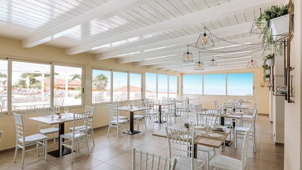 śniadanie (7.30-10.00), obiad (12.30-14.30) i kolacja (18.30-21.00) w formie bufetu, w restauracji głównej; dostępne dania wegetariańskie, wegańskie i bezglutenowe; do śniadania: woda, herbata, kawa; do obiadu i kolacji: woda, napoje bezalkoholowe, piwo, wino; przekąski w barze przy basenie (11.00-17.00); napoje bezalkoholowe, napoje alkoholowe, piwo, processco, kawa w barze przy basenie (10.00-24.00); wymagane noszenie opasek all inclusive.