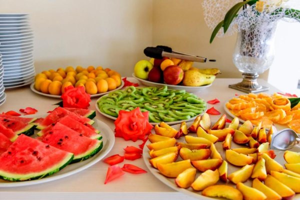 śniadanie (7.00-10.00), obiad (12.30-14.00) i kolacja (19.30-21.00) w formie bufetu w restauracji głównej; do śniadania woda, herbata, kawa, do obiadu i kolacji woda i kieliszek wina; raz w tygodniu bezpłatna kolacja w restauracji à la carte (w miarę dostępności, wymagana wcześniejsza rezerwacja)