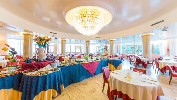 restauracja główna – dania w formie bufetu, kuchnia śródziemnomorska i międzynarodowa, diety specjalne (na zapytanie); restauracja Il Boschetto w ogrodzie (wymagana wcześniejsza rezerwacja, czynna w okresie od połowy czerwca do połowy września w porze obiadu) – dania w formie bufetu, obsługa kelnerska, kuchnia śródziemnomorska i międzynarodowa; 2 bary: główny, przy plaży