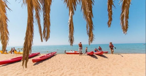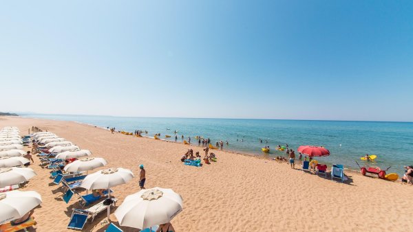 ok. 200 m od hotelu; piaszczysta; na terenie rezerwatu przyrody Foce del Belice; wydzielony odcinek hotelowy; łagodne zejście do morza; dojście przez teren hotelu lub w sezonie dojazd na plażę bezpłatnym hotelowym busem (termin i częstotliwość kursów ustala hotel); bezpłatne parasole i leżaki od 2. rzędu (2 leżaki i parasol/pokój, ilość ograniczona)