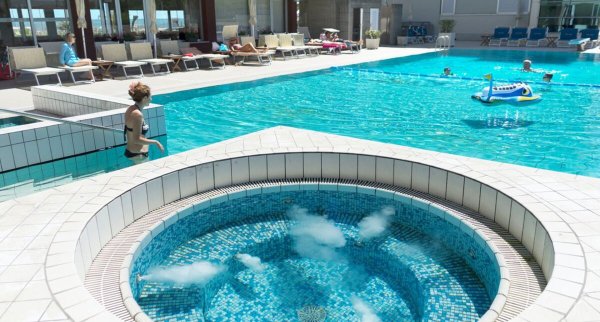 • Sauny: 1, sauna fińska, aromatyczna sauna olejowa, łaźnia turecka, fontanna lodowa/grotto, prysznic wrażeń, pokój relaksacyjny • Masaże: masaż klasyczny, masaż sportowy, masaż refleksologiczny stóp, masaż gorącymi kamieniami, masaż shiatsu, masaż Ayurveda, masaż całego ciała, masaż częściowy ciała • Strefa wellness/spa "SPA ACQUAMARINA": od 17 lat, wrzesień - czerwiec, 15:00 - 20:00, płatność gotówką, za korzystanie od 20 EUR, języki: niemiecki, angielski, włoski, francuski, powierzchnia: 150 m2, gabinety zabiegowe: 1, gabinety zabiegowe dla par: 0, strefa dla dzieci • masaże: płatność gotówką