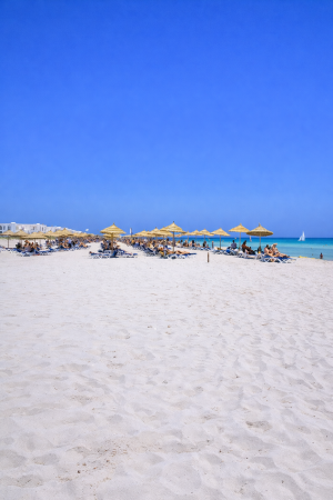 Yati, publiczna, piaszczysta, szeroka, łagodne zejście do morza, bezpośrednio przy hotelu, bezpłatne parasole, leżaki i ręczniki za kaucją (ok. 10 TND); bar na plaży czynny w sezonie letnim, sporty wodne (płatne).
