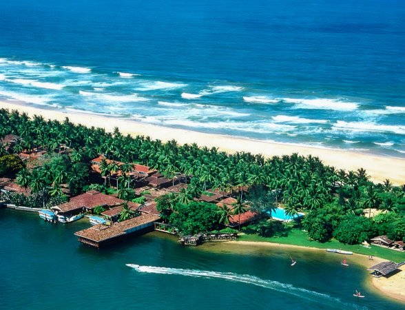 Na malowniczym cyplu pomiędzy wodami oceanu a rzeką Bentota, 3 km od miejscowośći Aluthgama, ok. 100 km na południe od Colombo i 60 km od międzynarodowego lotniska, przy dwóch plażach. Jedną z atrakcji - dzięki nietypowemu położeniu - jest przeprawa łodzią do hotelu.