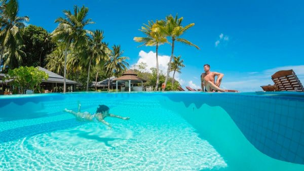 Raj na środku oceanu! Biała, długa plaża, błękit Oceanu Indyjskiego i eleganckie wille, z których można bezpośrednio wyjść na plażę stworzyły wymarzone miejsce na romantyczne wakacje. Piękny basen, kolacja we dwoje w egzotycznej scenerii i doskonały serwis na najwyższym światowym poziomie, a wszystko w jednym miejscu, przygotowane specjalnie dla najbardziej wymagających Gości. Alternatywą do cudownej plaży jest basen ze słodką wodą, z pięknym widokiem na ocean, otoczony majestatycznymi palmami, w pobliżu którego znajduje się basen dla dzieciaków. Do dyspozycji Gości są 2 restauracje, 2 bary i pub, centrum nurkowe PADI. Warto także skorzystać z hotelowego spa Araamu z relaksującymi masażami.