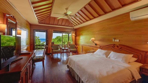 2-os. (możliwość 1 dostawki dla os. dorosłej lub 2 dzieci); ok. 32 m²; indywidualnie sterowana klimatyzacja; łazienka (prysznic lub wanna, wc); internet bezprzewodowy; telewizor; telefon; sejf; zestaw do kawy/herbaty; taras (stolik i krzesełka); bezpośrednie wyjście na plażę; widok na morze; za opłatą: minibar